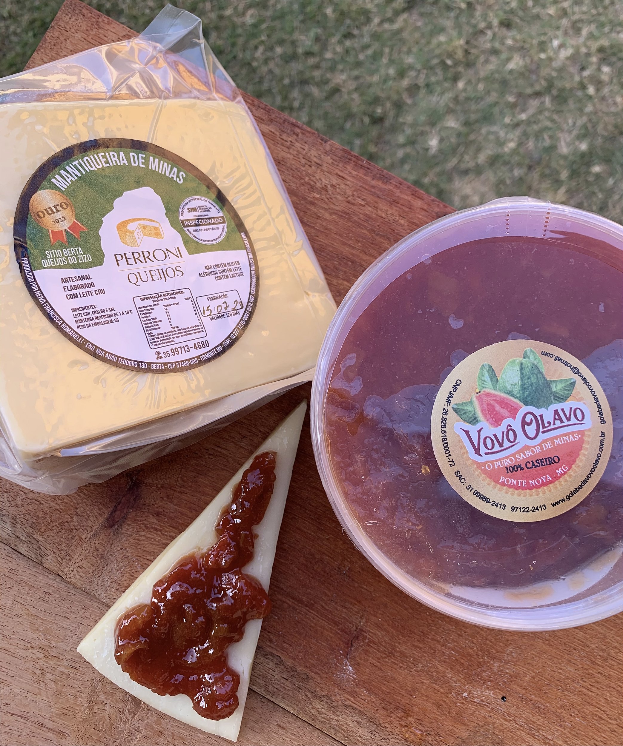 Esse kit especial homenageia a clássica sobremesa Romeu e Julieta! Goiabada com queijo! Perfeita combinação para o seu café. Essa é uma sugestão mais ousada de consumir goiabada com queijo tipo parmesão, sem o queijo minas fresco. Mas temos certeza de que vamos te agradar! Goiabada cremosa com pedaços de goiaba. Queijo curado por 90 dias, aroma e sabor acentuado com uma leve picância.
