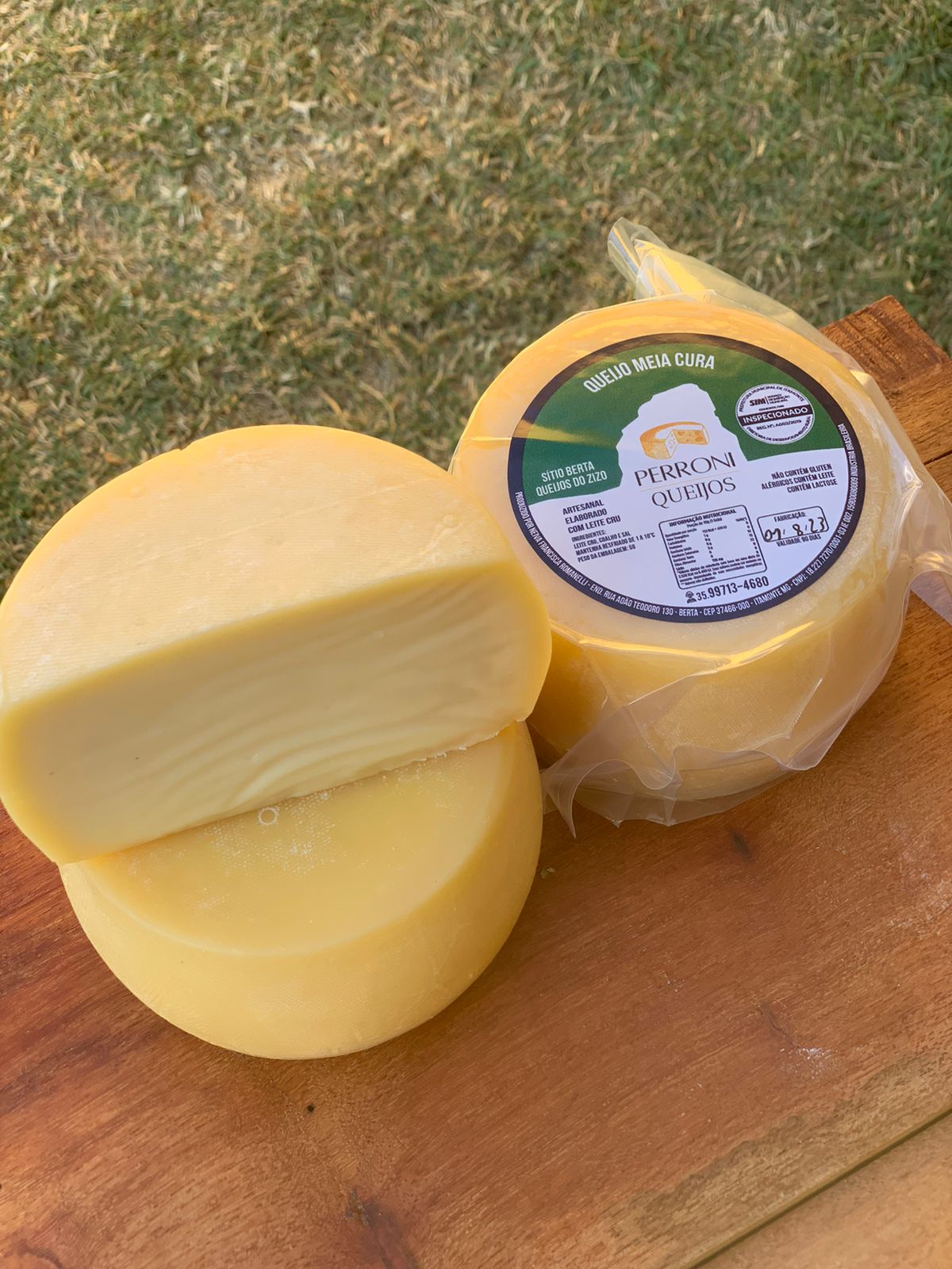 Queijo meia cura maturado em sala de cura especializada, de sabor suave, textura cremosa e macio.